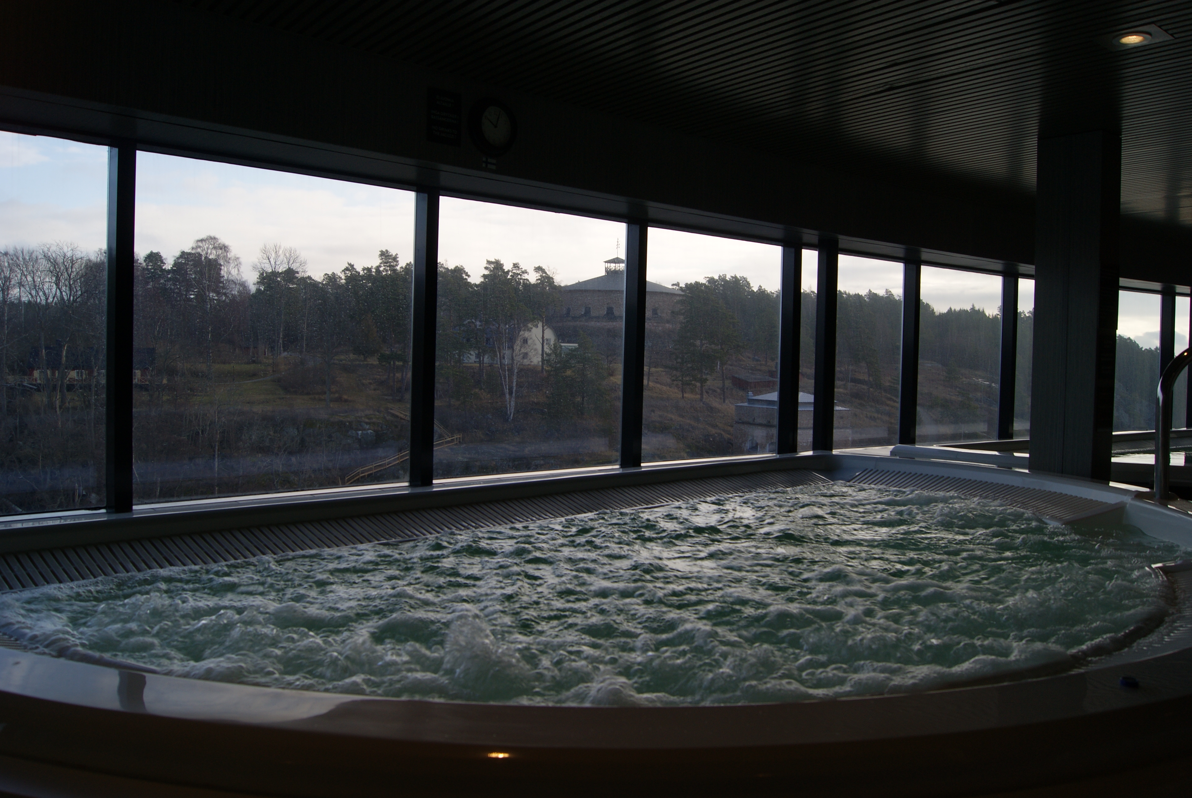 Suurehkoa aamiaista voi sulatella myös mukavan väljässä porealtaassa. Kun pari tuntia lilluu, ainakin sata kaloria kuluu… kuluuhan?