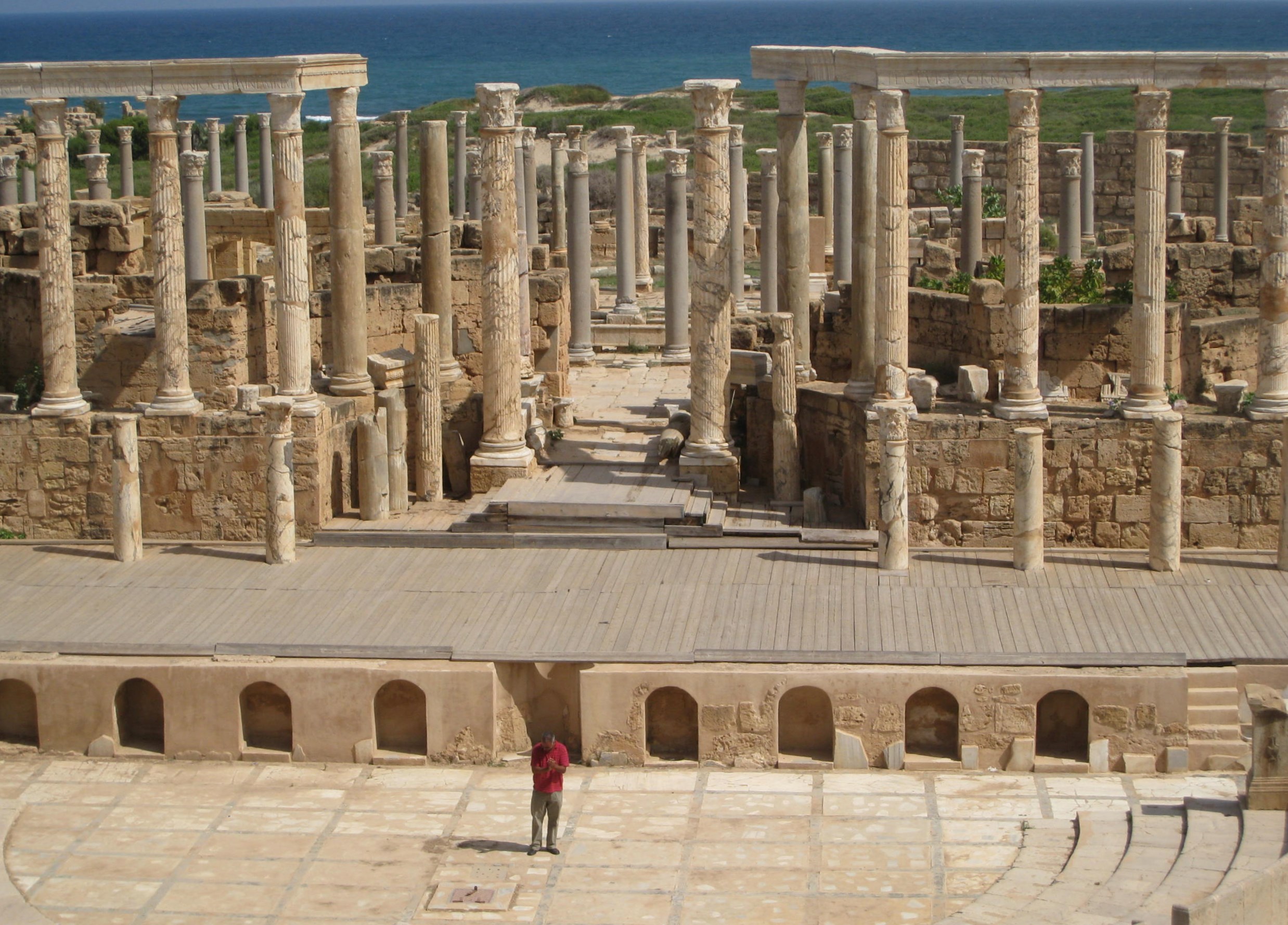 Tripolin-matkaan sisältyi vierailu 130 kilometrin päässä Leptis Magnassa, josta moni muukin oli tehnyt huonosti kotiläksynsä. Parhaiten maailmassa säilynyt kokonainen antiikin kaupunki oli musta aukko. Ei siellä ollut kukaan ennen käynyt, eikä siellä myöskään ollut ketään.