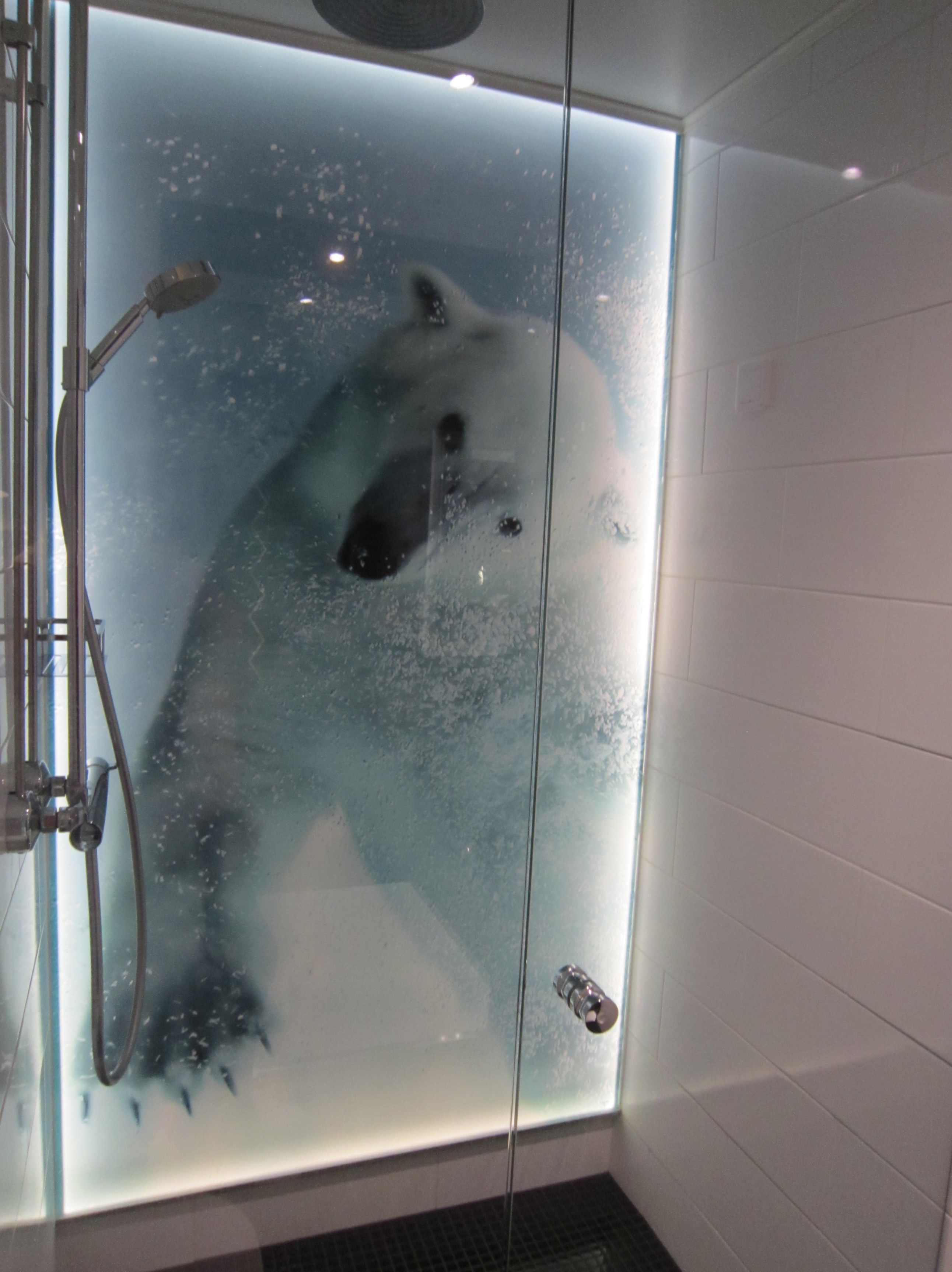 Mitenkään en voi moittia Trivagon ja Tripadvisorin Suomen ykköseksi rankkaamaa Arctic Light -hotellia, mutta siellä en yöpynyt. Hotellin symboli on jääkarhu, Ranuallehan syntyi juuri vauva, mutta herkkiksiä saattaa pelottaa suihkuseinän kuva: