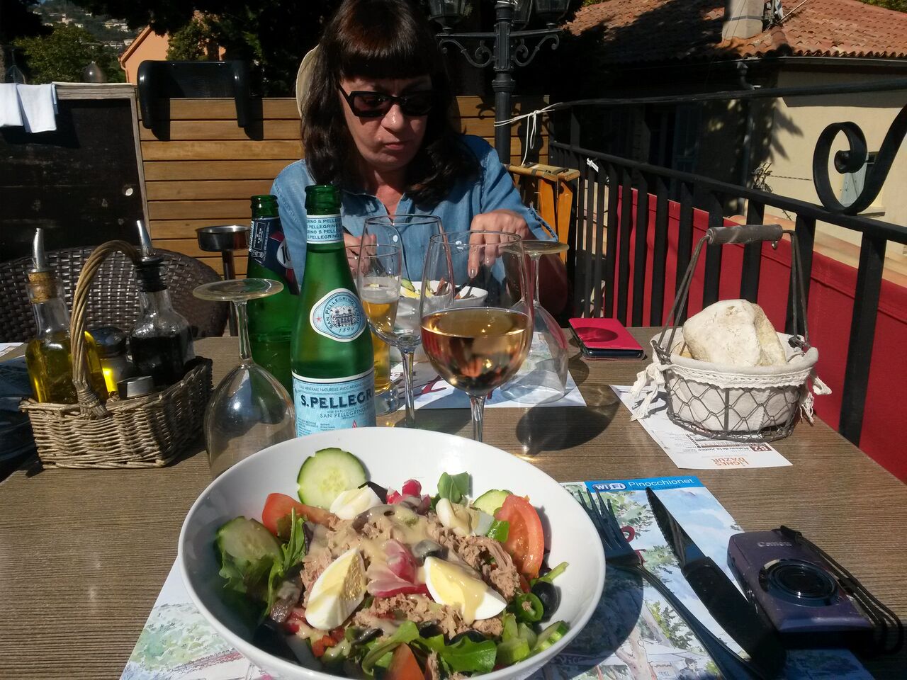 Matka ylös oli kiva ja mutkikas. Kylän infopisteen riivinrauta ynseä, perillä nautittu Nizzan salaatti ei enemäpää kuin osiensa summa.