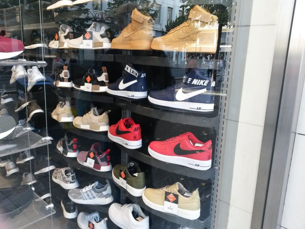 Pojalle perinteisesti kenkiä Foot Lockerista, itsellekin, vanhemmille lapsille vähän vaatetta ja koruja. Kenkäosto sujuu mallikkaasti, kun ottaa kuvan hyllystä, lähettää pojalle ja kysyy mitä saisi olla. Menetelmä on toiminut hyvin moniaat kerrat.